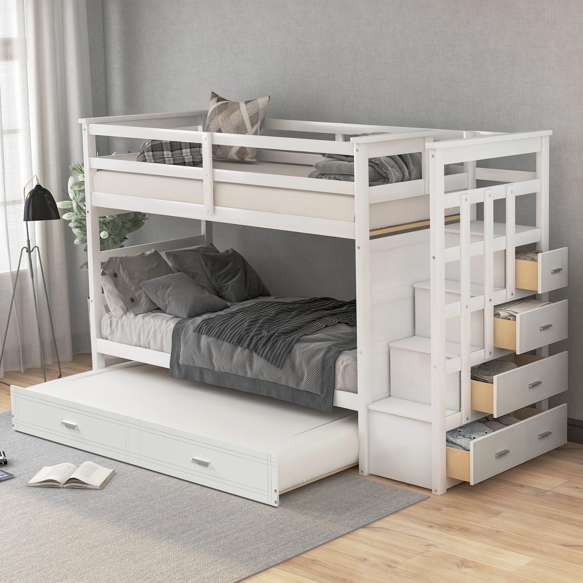 TwinOverTwin Bunk Bed with Trundle and 3 Storage Stairs for Kids